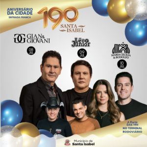 10 DE JULHO (DOMINGO) – COMEMORAÇÃO DE 190 ANOS DA CIDADE