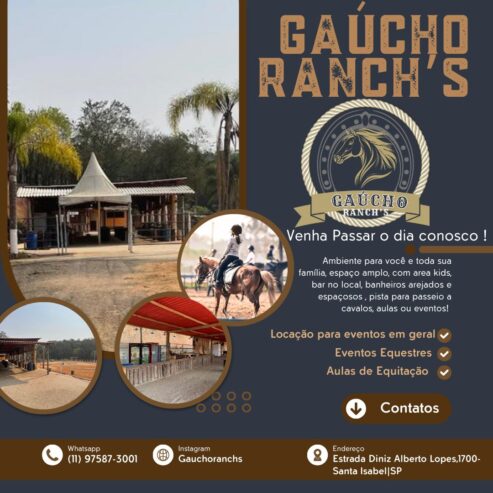 Aqui você encontra um ambiente tranquilo e acolhedor em meio a natureza e a vida simples, possuímos um amplo local tanto coberto como a céu aberto, para eventos de quaisquer natureza, lembrando que somos também um centro de treinamento o que torna o seu evento com ar country, caipira e rústico, dando uma temática ao local.
